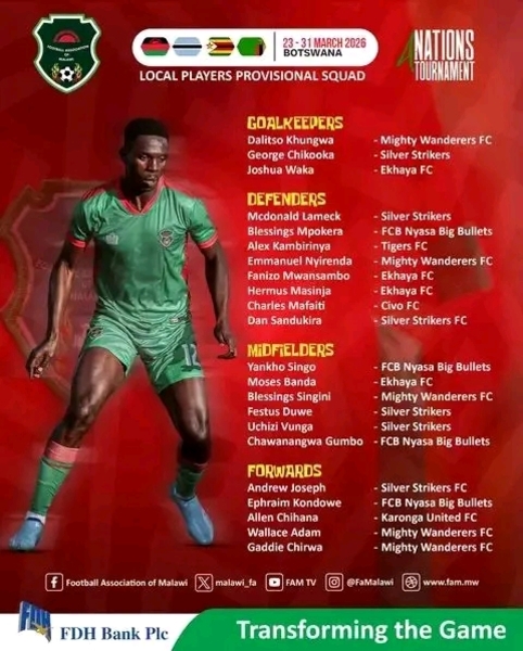 Mphunzitsi watimu ya dziko lino, Kalisto Pasuwa, wayitana 22 omwe alowe m'bindikiro kukonzekera masewero a matimu anayi ku Botswana kumathero a mwezi uno.