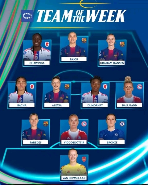 Tabitha Chawinga was included in the UEFA Women's Champions League following her impressive performance as OL Lyoness beat Wolfsburg 4-1 on aggregate.